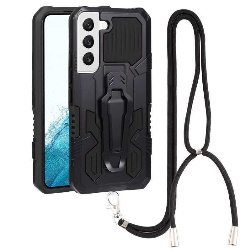 Για Samsung Galaxy S22 5G Lanyard Mecha Armor Kickstand PC + TPU τηλέφωνο υπόθεση (Μαύρο)