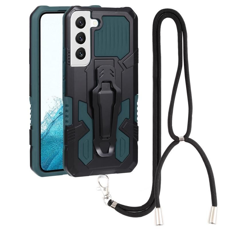 Για το Samsung Galaxy S22 5G Lanyard Mecha Armor Kickstand PC + TPU τηλέφωνο υπόθεση (πράσινο)