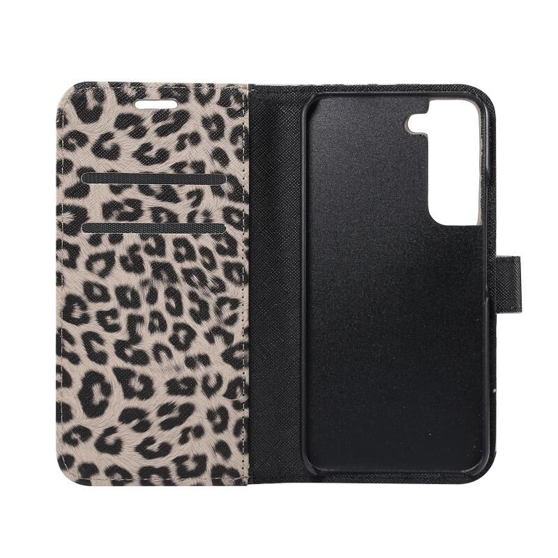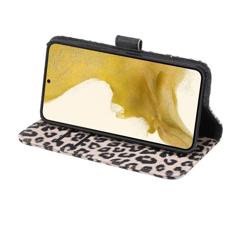 Θήκη τηλεφώνου Samsung Galaxy S22 5G με σχέδιο λεοπάρδαλης, δερμάτινη, αναδιπλούμενη (Κίτρινο)