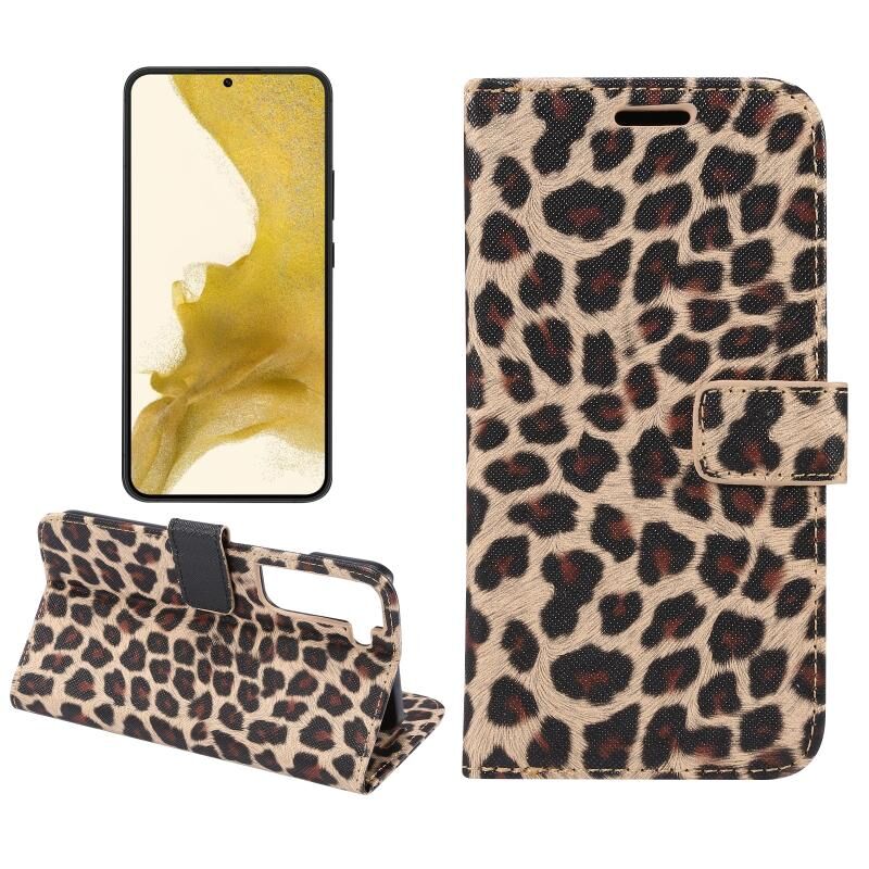 Θήκη τηλεφώνου Samsung Galaxy S22+ 5G με σχέδιο λεοπάρδαλης, δερμάτινη, αναδιπλούμενη (Κίτρινο)