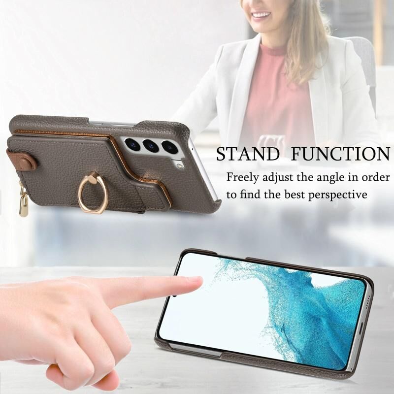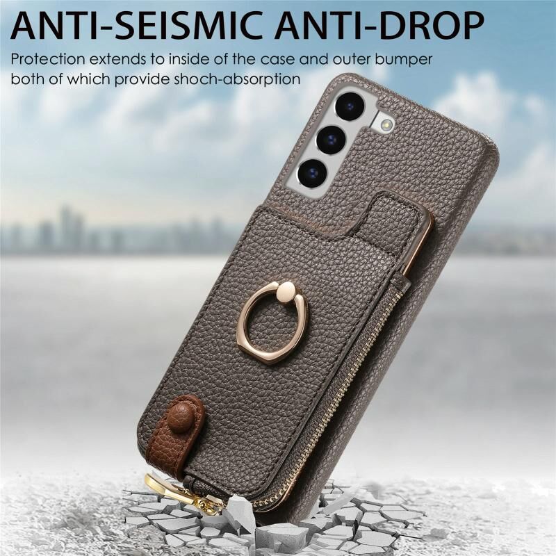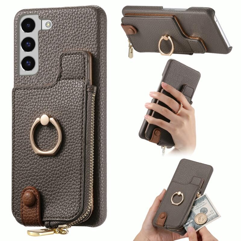 Για Samsung Galaxy S22 5G Litchi δέρμα λάδι Edge δαχτυλίδι φερμουάρ πορτοφόλι πίσω υπόθεση τηλεφώνου (γκρι)