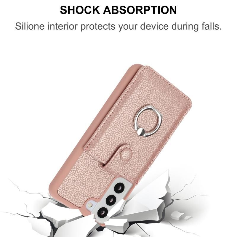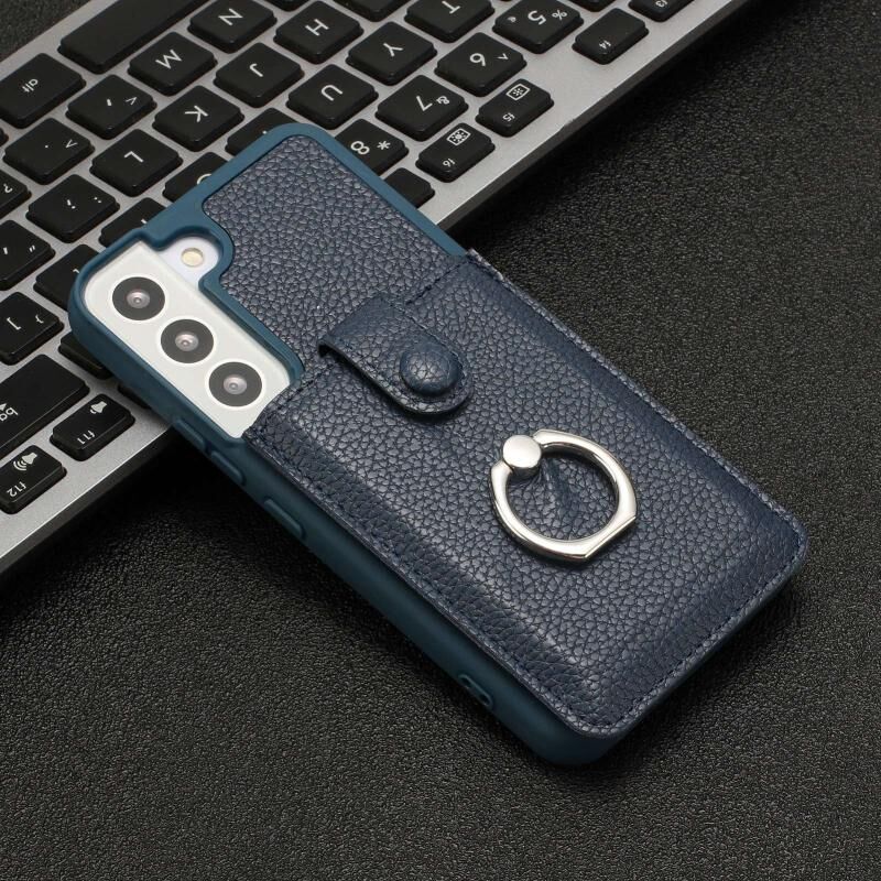 Για Samsung Galaxy S22 5G Litchi Υφή Σχεδίαση κάρτα τσάντα τσάντα δαχτυλίδι κάτοχος υπόθεση τηλεφώνου (μπλε)