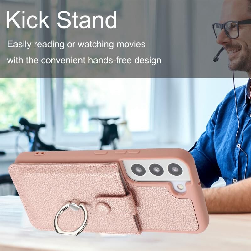 Για Samsung Galaxy S22 5G Litchi Υφή Σχεδίαση κάρτα τσάντα τσάντα δαχτυλίδι κάτοχος υπόθεση τηλεφώνου (Rose Gold)