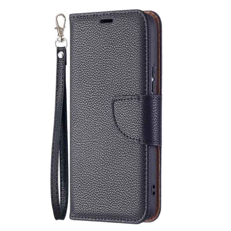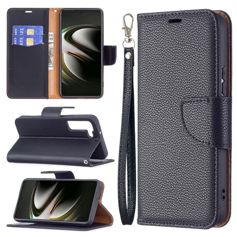 Για Samsung Galaxy S22 5G Litchi υφή καθαρό χρώμα οριζόντια Flip δερμάτινη θήκη τηλεφώνου με θήκη & υποδοχές για κάρτες & πορτοφόλι & κορδόνι (Μαύρο)