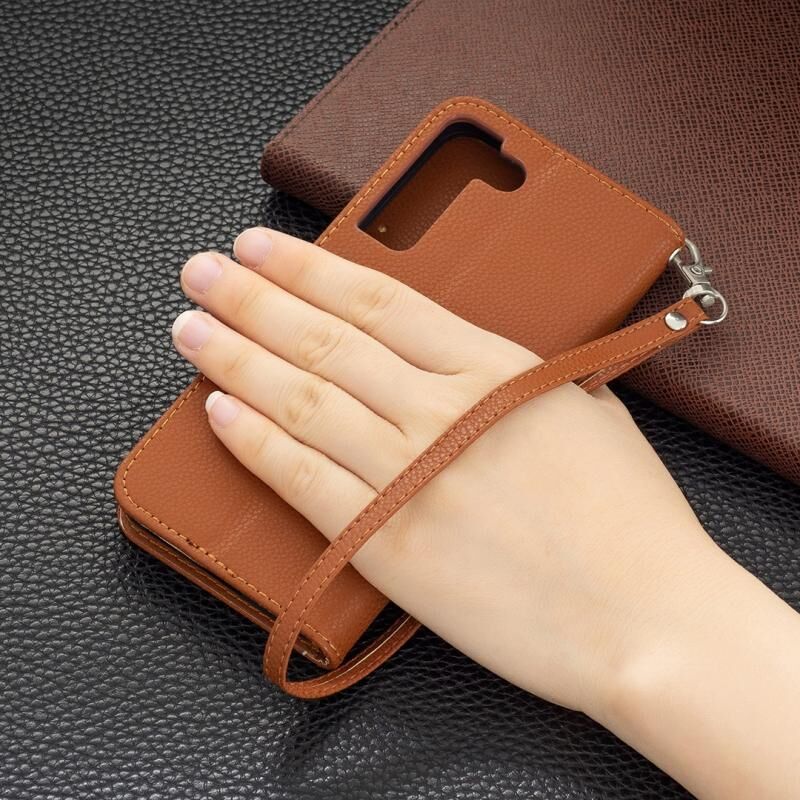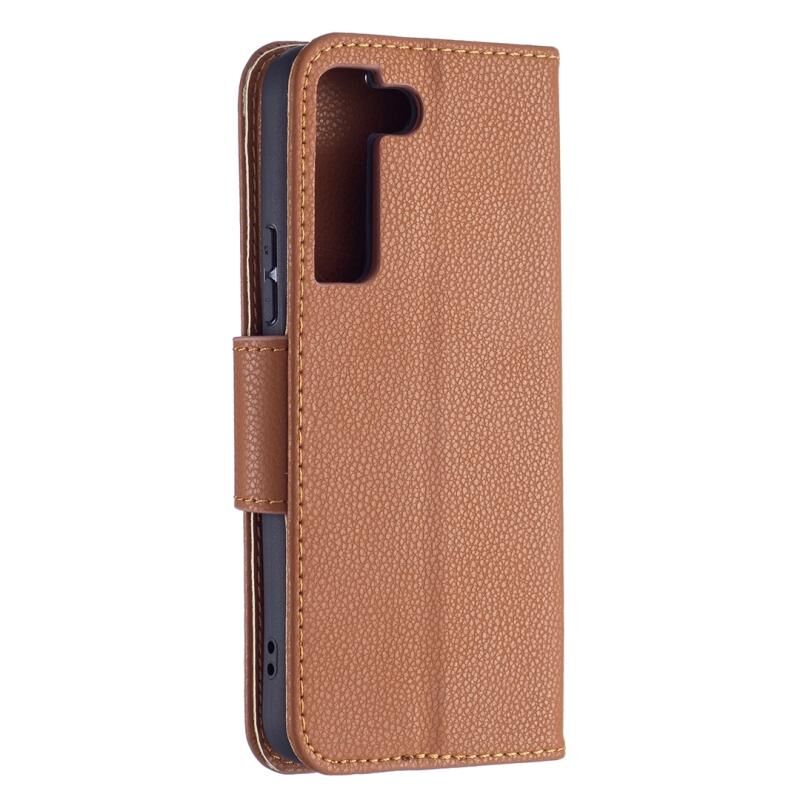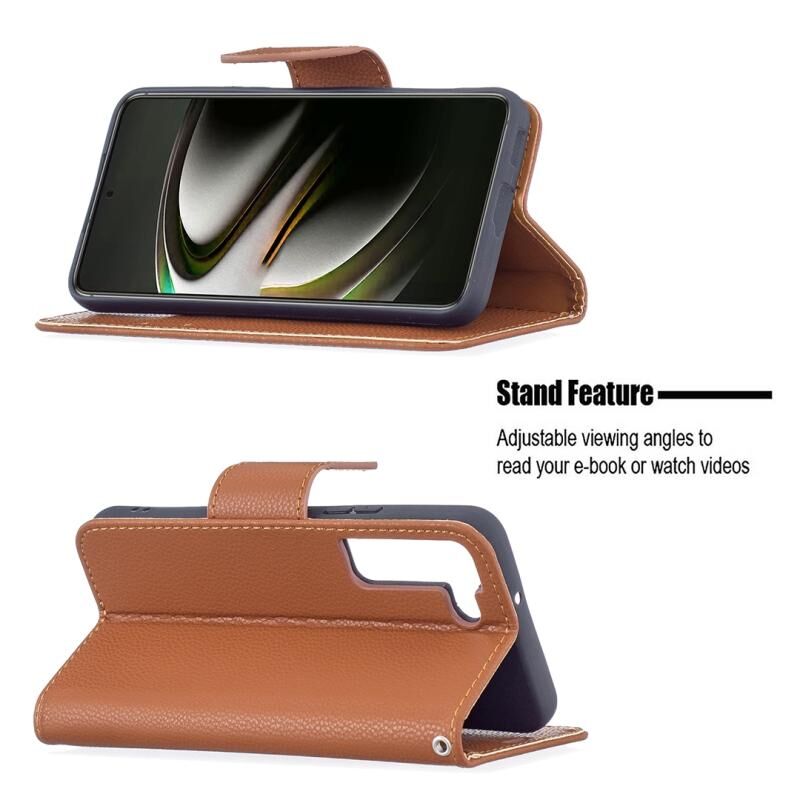 Για Samsung Galaxy S22 5G Litchi υφή καθαρό χρώμα οριζόντια Flip δερμάτινη θήκη τηλεφώνου με θήκη & υποδοχές για κάρτες & πορτοφόλι & κορδόνι (καφέ)