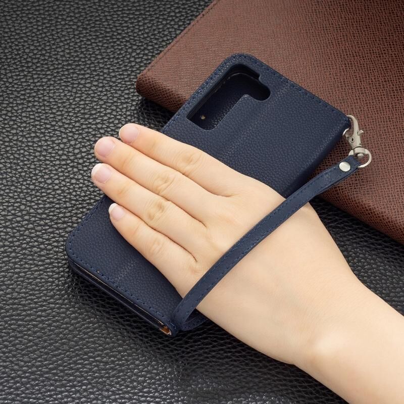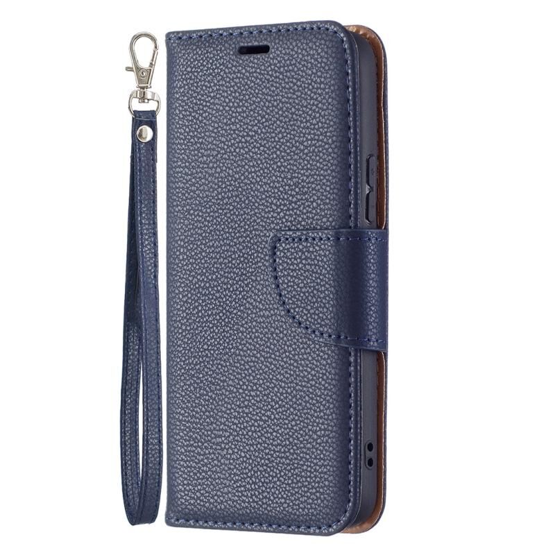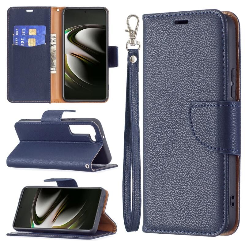 Για Samsung Galaxy S22 5G Litchi υφή καθαρό χρώμα οριζόντια Flip δερμάτινη θήκη τηλεφώνου με θήκη & υποδοχές για κάρτες & πορτοφόλι & κορδόνι (σκούρο μπλε)