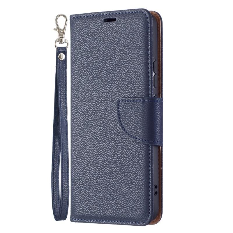 Για Samsung Galaxy S22 + 5G Litchi υφή καθαρό χρώμα οριζόντια Flip δερμάτινη θήκη τηλεφώνου με θήκη & υποδοχές για κάρτες & πορτοφόλι & κορδόνι (σκούρο μπλε)