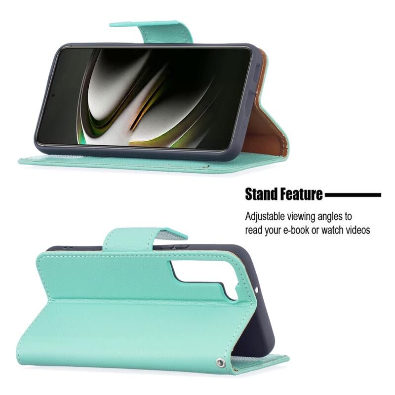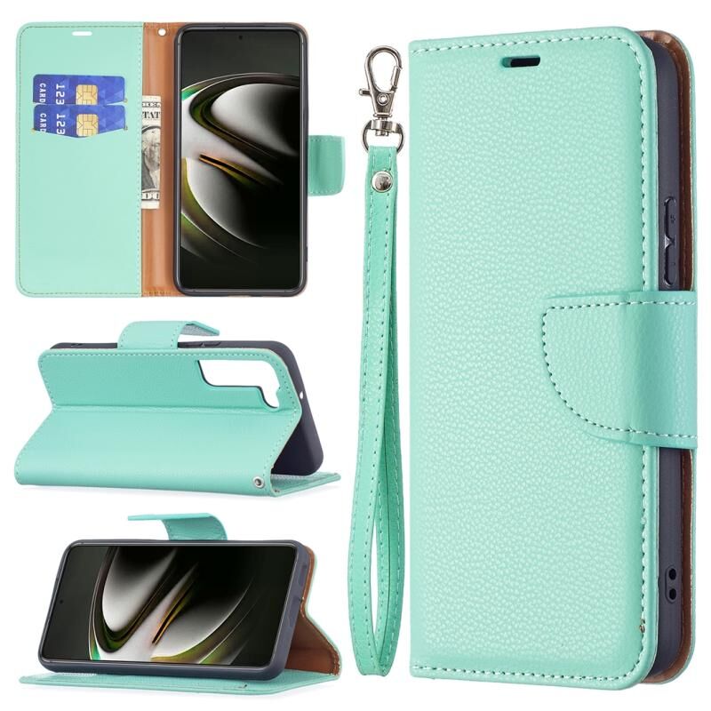 Για Samsung Galaxy S22 5G Litchi υφή καθαρό χρώμα οριζόντια Flip δερμάτινη θήκη τηλεφώνου με θήκη & υποδοχές για κάρτες & πορτοφόλι & κορδόνι (πράσινο)
