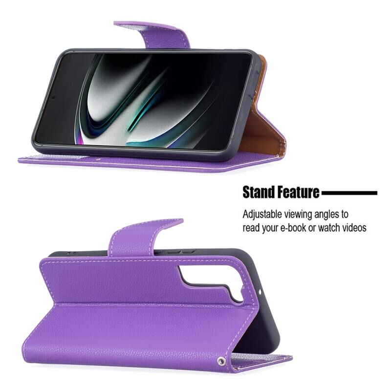 Για Samsung Galaxy S22 + 5G Litchi υφή καθαρό χρώμα οριζόντια Flip δερμάτινη θήκη τηλεφώνου με θήκη & υποδοχές για κάρτες & πορτοφόλι & κορδόνι (μωβ)