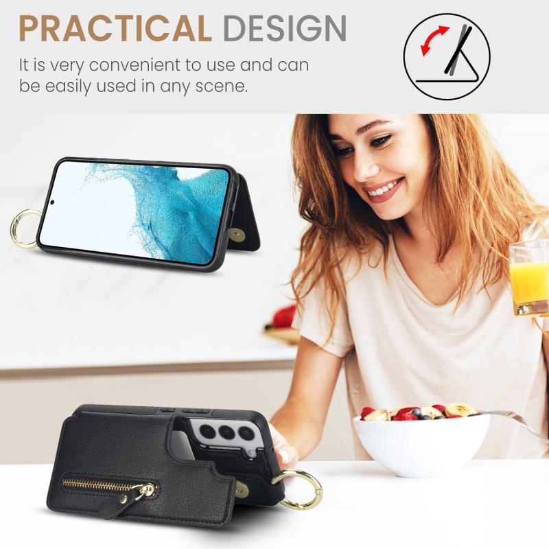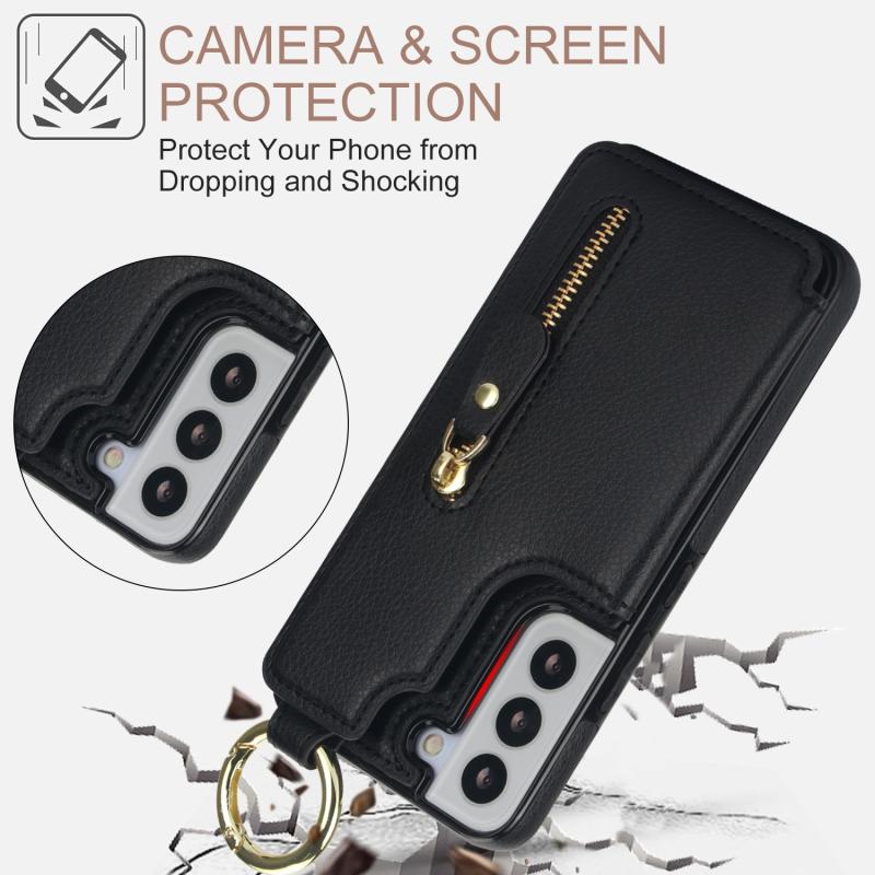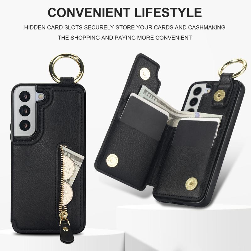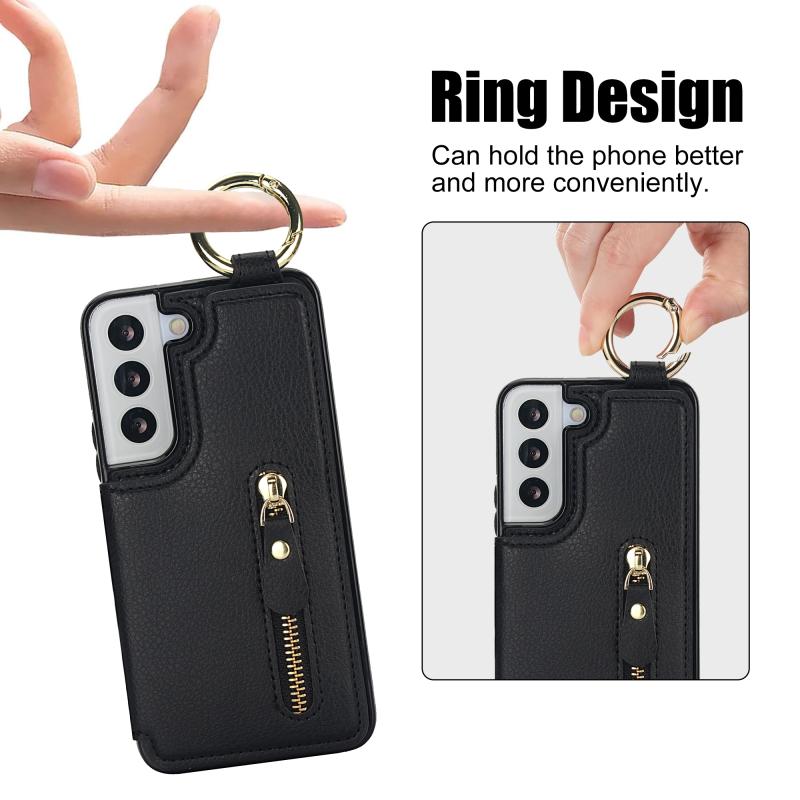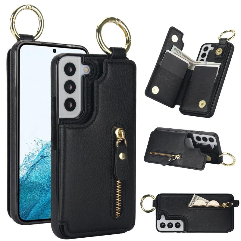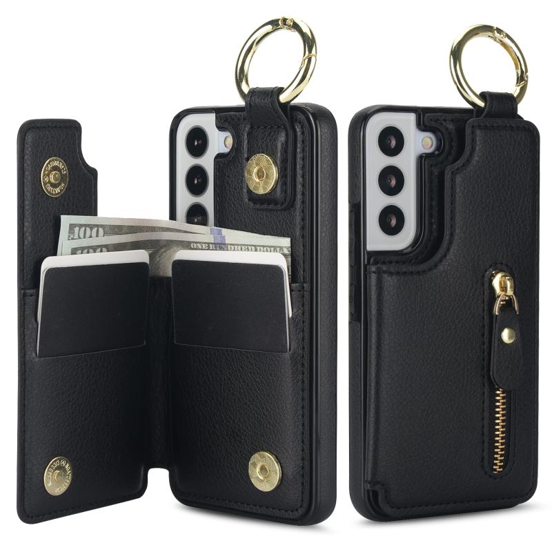 Για Samsung Galaxy S22 5G Θήκη με Δερματική Υφή, Φερμουάρ & Κάρτες (Μαύρο)