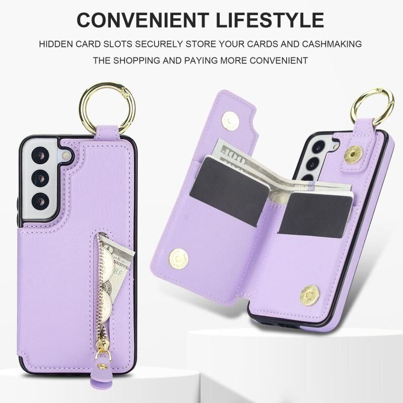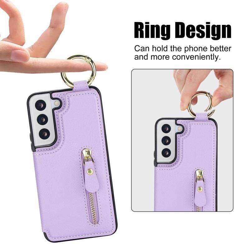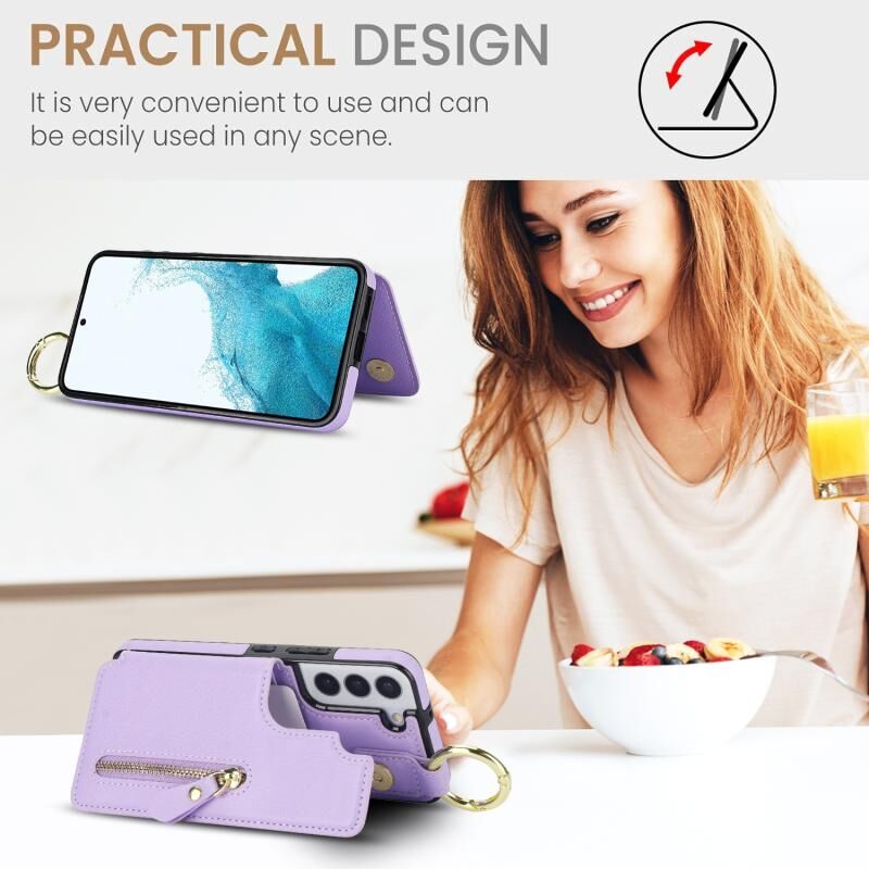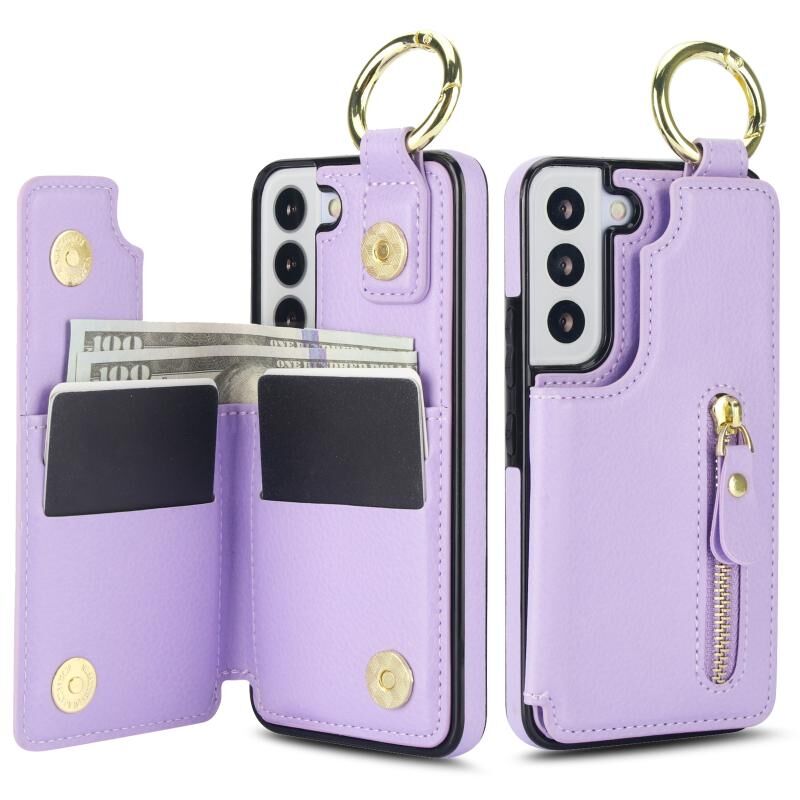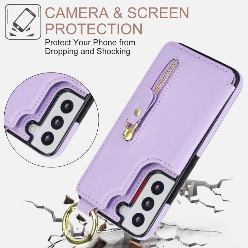 Για Samsung Galaxy S22 5G Litchi υφή φερμουάρ διπλή πόρπη κάρτα τσάντα υπόθεση τηλεφώνου (μωβ)