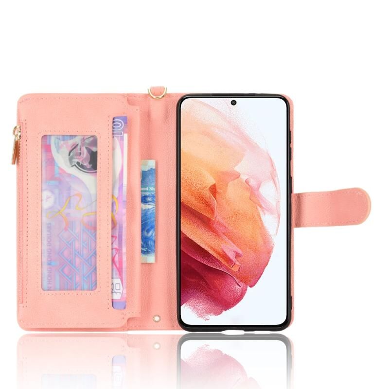 Για Samsung Galaxy S22 + 5G Litchi υφή φερμουάρ δερμάτινη θήκη τηλεφώνου (ροζ)