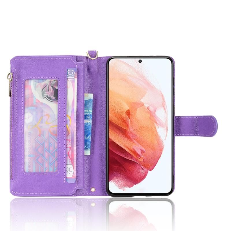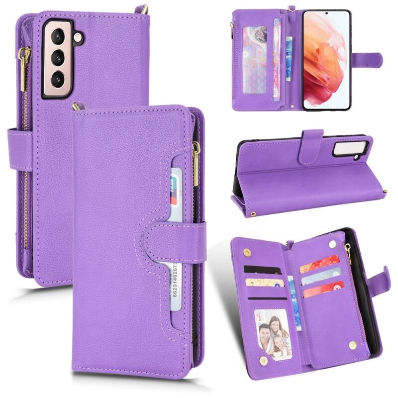 Για Samsung Galaxy S22 + 5G Litchi υφή φερμουάρ δερμάτινη θήκη τηλεφώνου (μωβ)