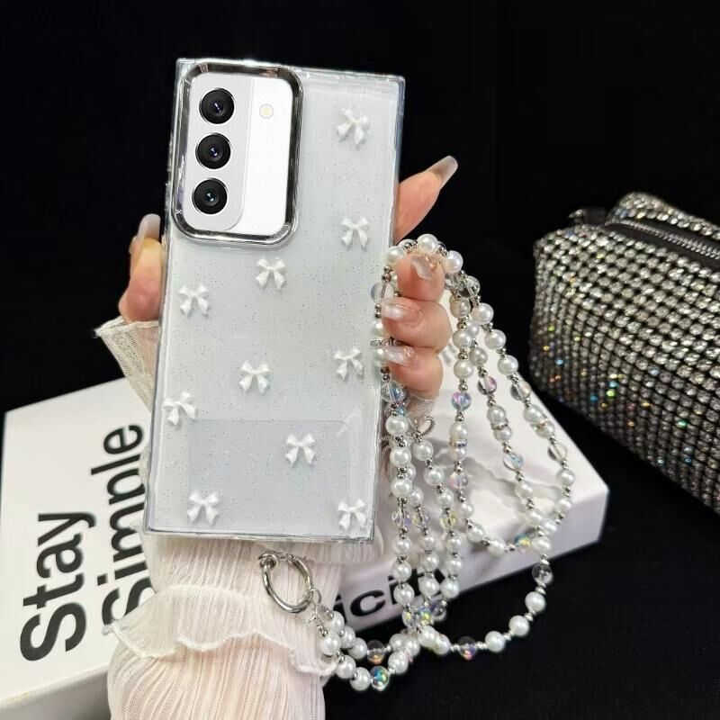 Θήκη τηλεφώνου TPU για Samsung Galaxy S22 5G με αλυσίδα λαιμού και σχέδιο φιόγκου (Μαύρο)