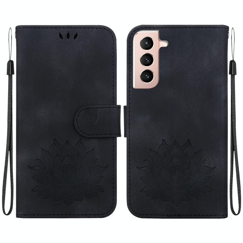 For Samsung Galaxy S22 5G Lotus Embossed Leather Phone Case(Black)