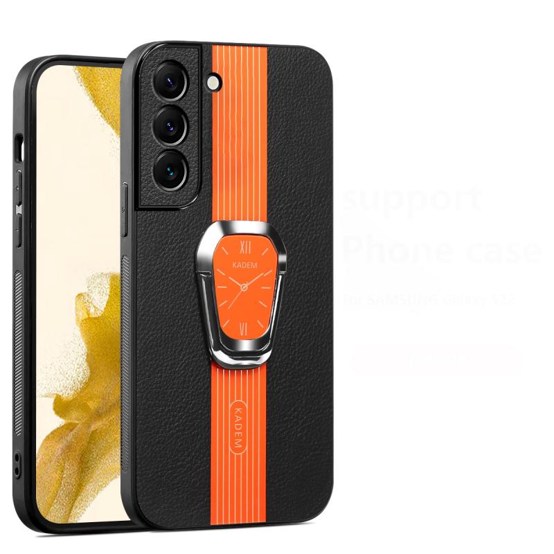 For Samsung Galaxy S22 5G Magnetic Litchi Leather Back Phone Case with Holder(Orange)