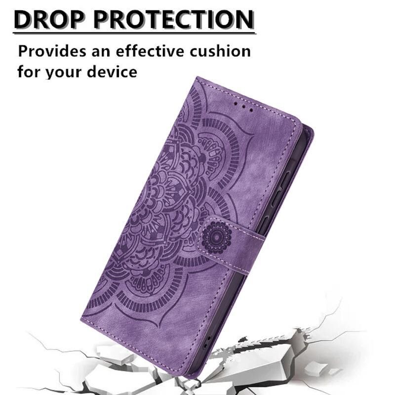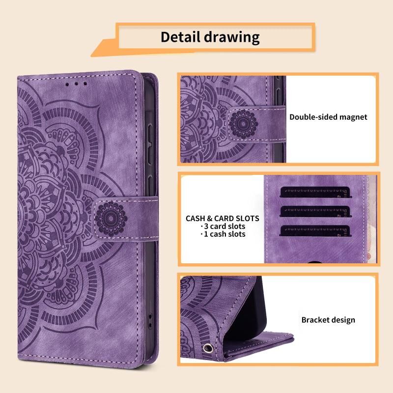 For Samsung Galaxy S22 5G Mandala Embossed Retro Frosted Leather Phone Case(Purple)