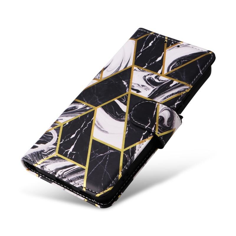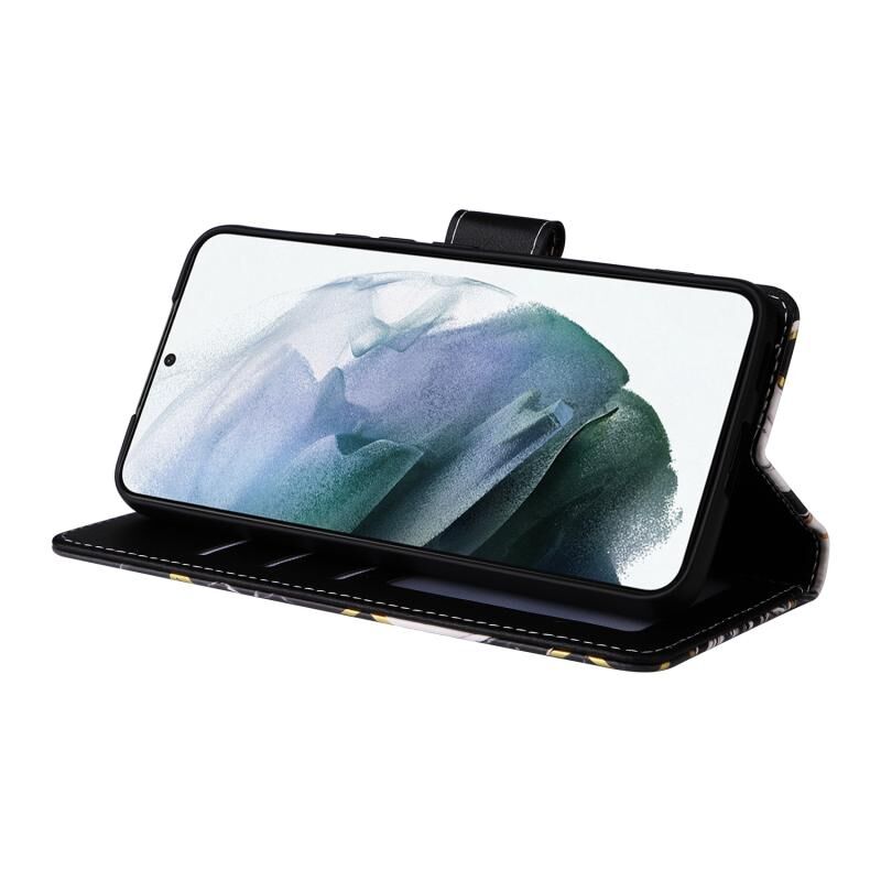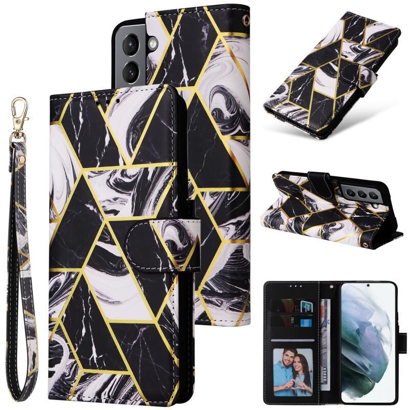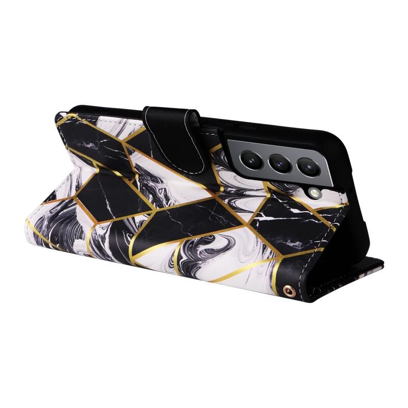 Θήκη τηλεφώνου Samsung Galaxy S22 5G από δέρμα με ραφές και μαρμάρινη επίστρωση μπρούτζου (Μαύρο)