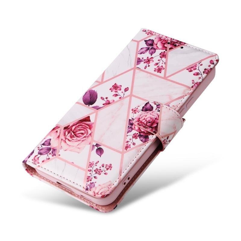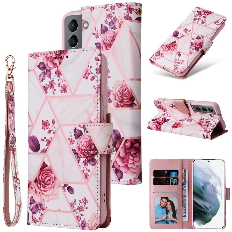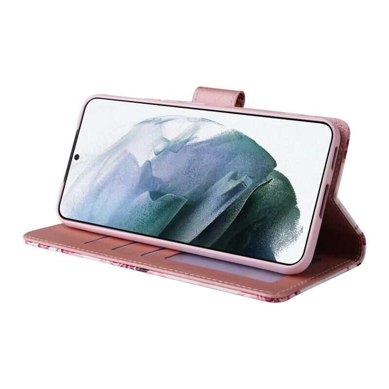 Θήκη τηλεφώνου Samsung Galaxy S22 5G από δέρμα με ραφές και μαρμάρινη επίστρωση μπρούτζου (Μαύρο)