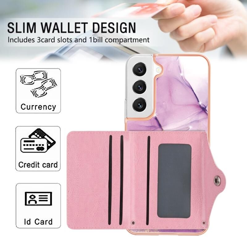 Θήκη κινητού τηλεφώνου Samsung Galaxy S22+ 5G με σχέδιο μάρμαρου IMD και θήκη κάρτας (Ροζ, Μωβ, Χρυσό)