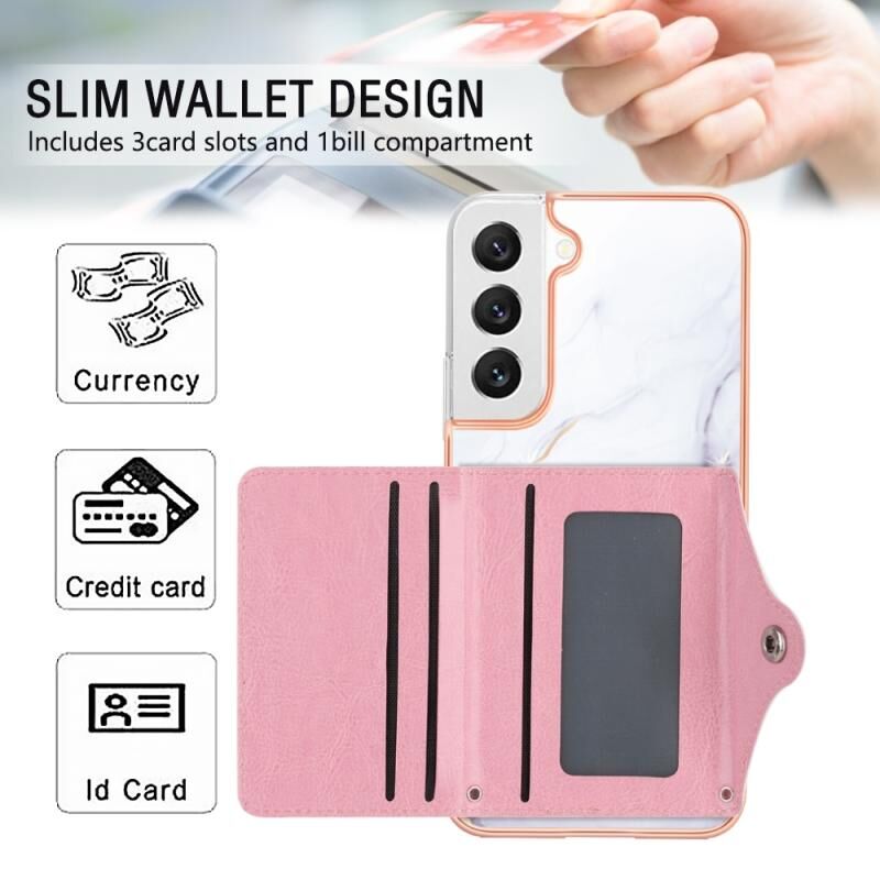 Θήκη κινητού τηλεφώνου Samsung Galaxy S22+ 5G με σχέδιο μάρμαρου IMD και θήκη κάρτας (Ροζ, Μωβ, Χρυσό)