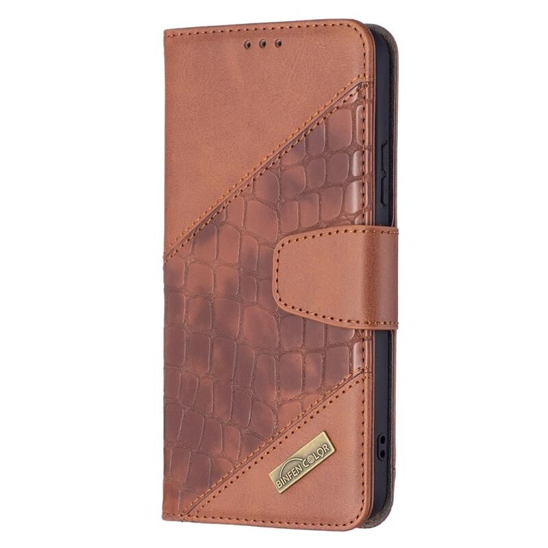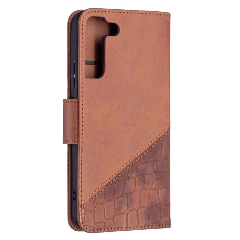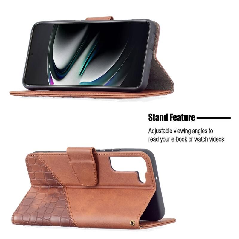 Για Samsung Galaxy S22 5G Matching Color Crocodile Texture Δερμάτινη θήκη τηλεφώνου με θήκη & υποδοχές για κάρτες & πορτοφόλι (καφέ)