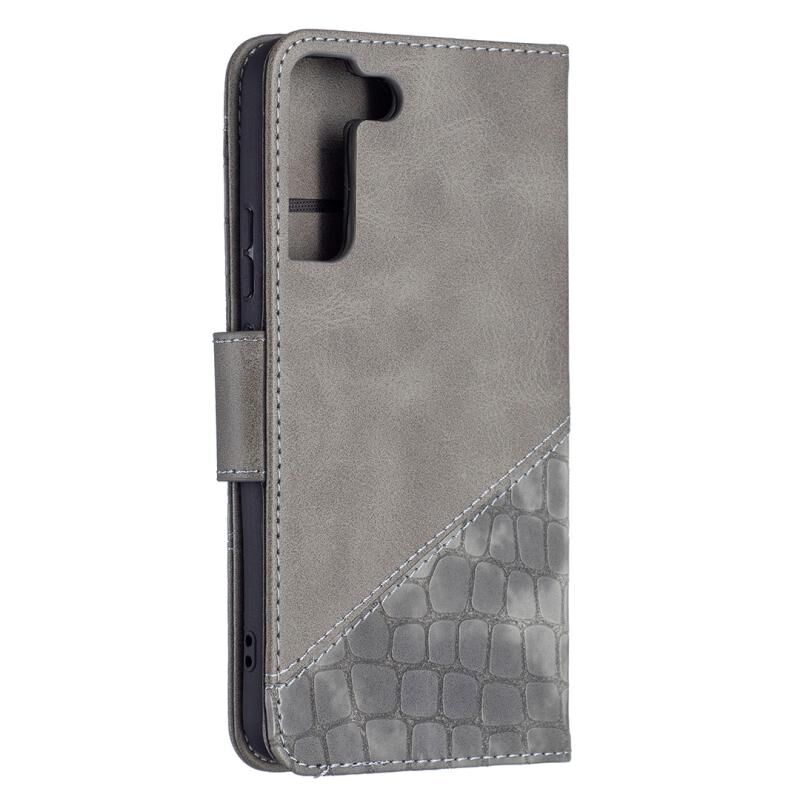 Για Samsung Galaxy S22 5G Matching Color Crocodile Texture Δερμάτινη θήκη τηλεφώνου με θήκη & υποδοχές για κάρτες & πορτοφόλι (γκρι)