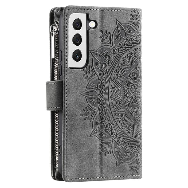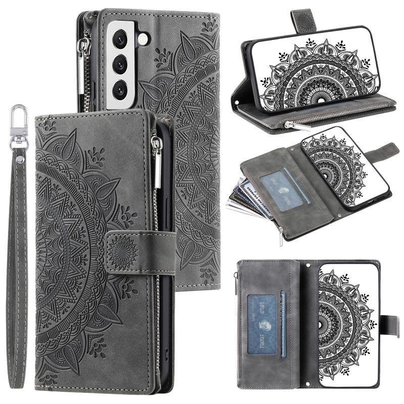 For Samsung Galaxy S22 5G Multi-Card Totem Zipper Leather Phone Case(Grey)