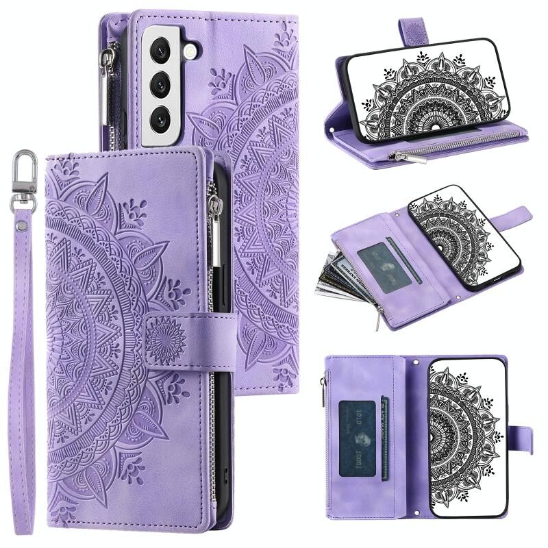 Για Samsung Galaxy S22 5G Multi-Card Totem φερμουάρ δερμάτινη θήκη τηλεφώνου (μωβ)
