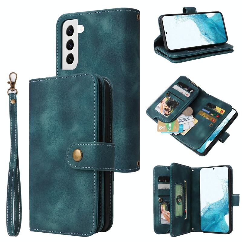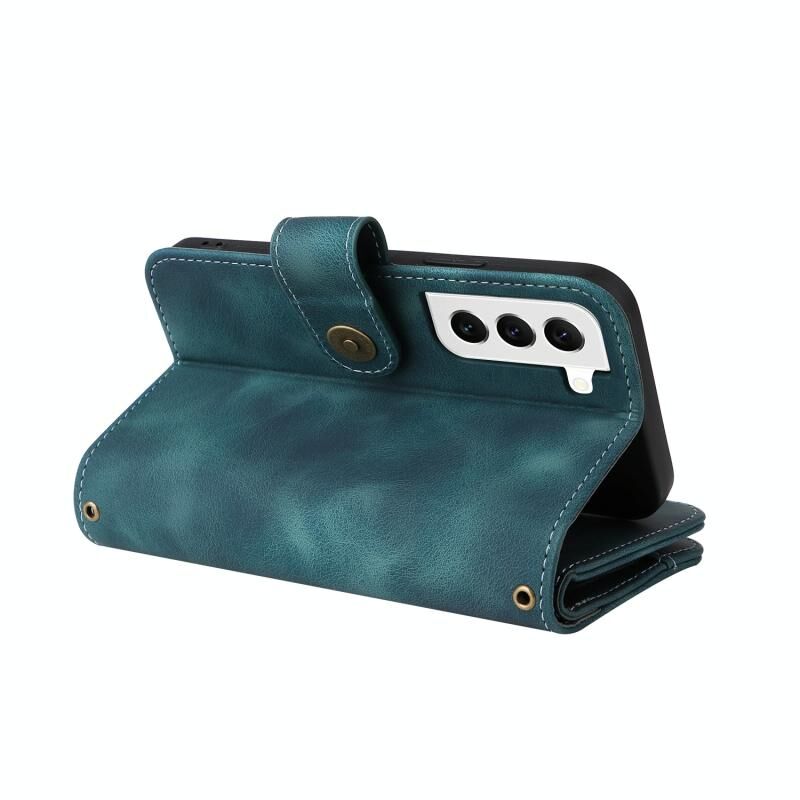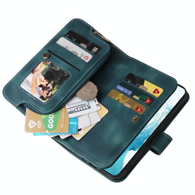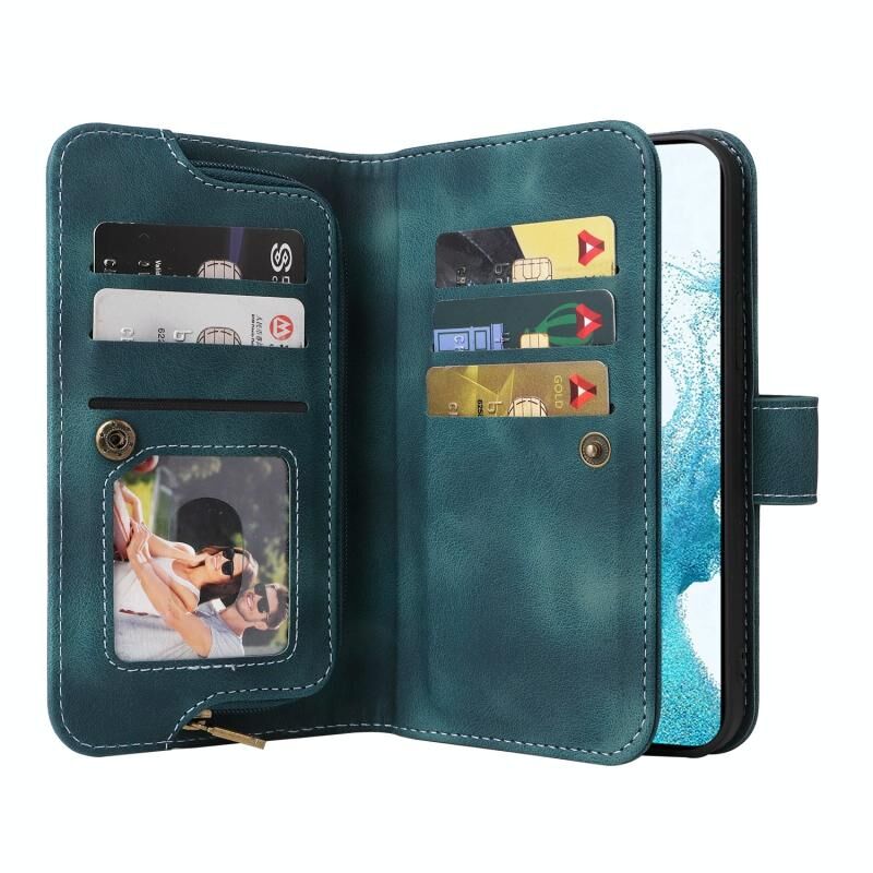 Για Samsung Galaxy S22 + 5G πολυλειτουργική κάρτα Slot φερμουάρ πορτοφόλι δερμάτινη θήκη τηλεφώνου (μπλε)