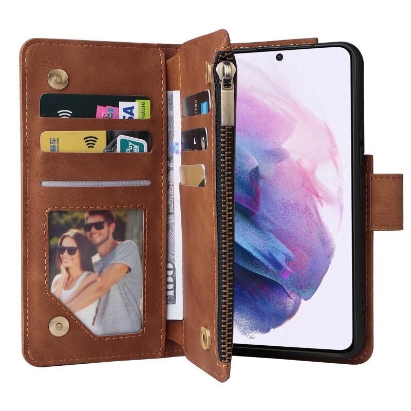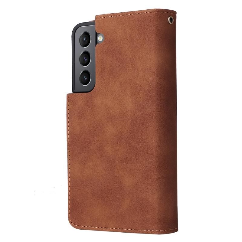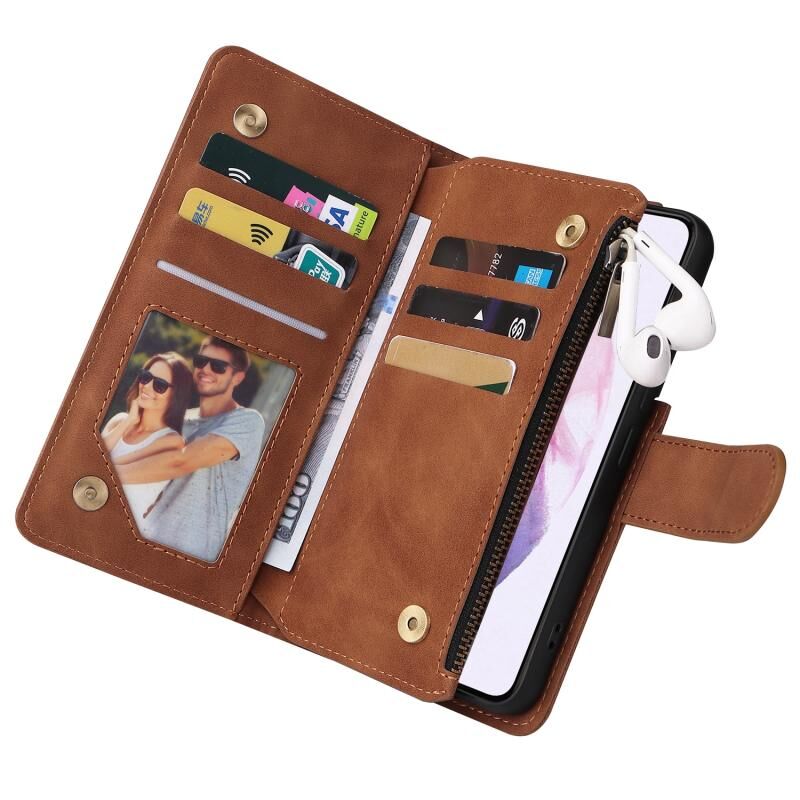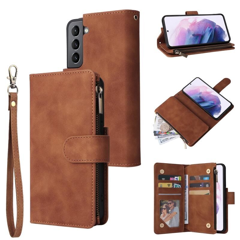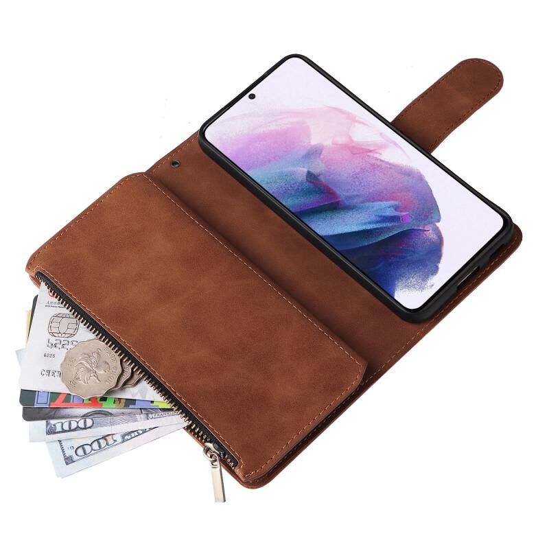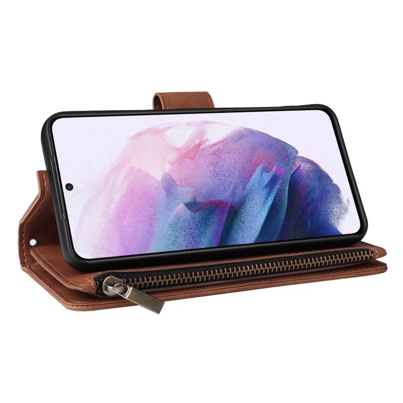 Για Samsung Galaxy S22 + 5G πολυλειτουργικό παγωμένο φερμουάρ πορτοφόλι δερμάτινη θήκη τηλεφώνου (καφέ)