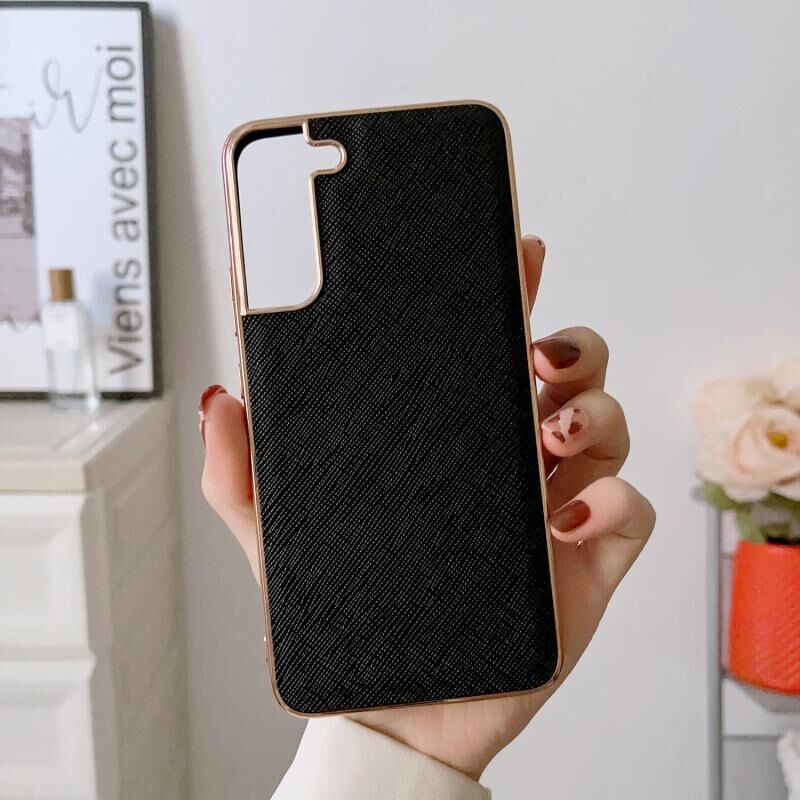 Θήκη τηλεφώνου από γνήσιο δέρμα με σταυρωτή υφή και νανο-επίχρυση για Samsung Galaxy S22+ 5G (Πράσινο)