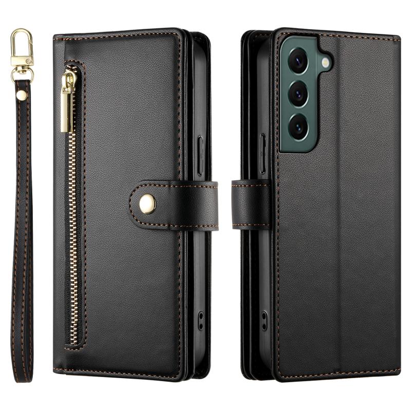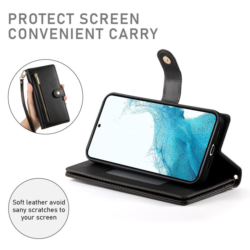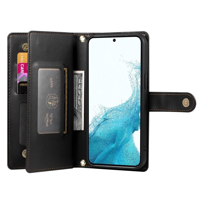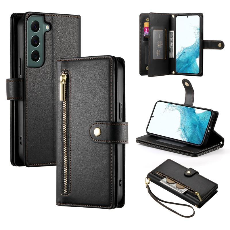 For Samsung Galaxy S22 5G Nine Card-slot Zipper Wallet Bag Leather Phone Case(Black)