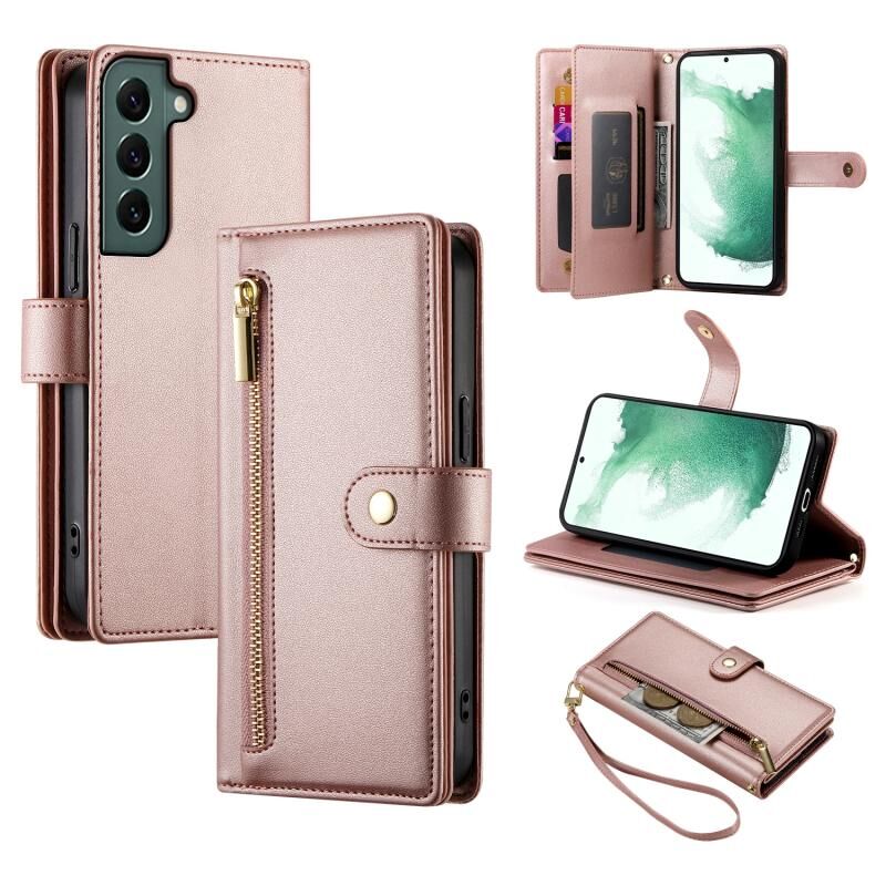 For Samsung Galaxy S22+ 5G Nine Card-slot Zipper Wallet Bag Leather Phone Case(Pink)