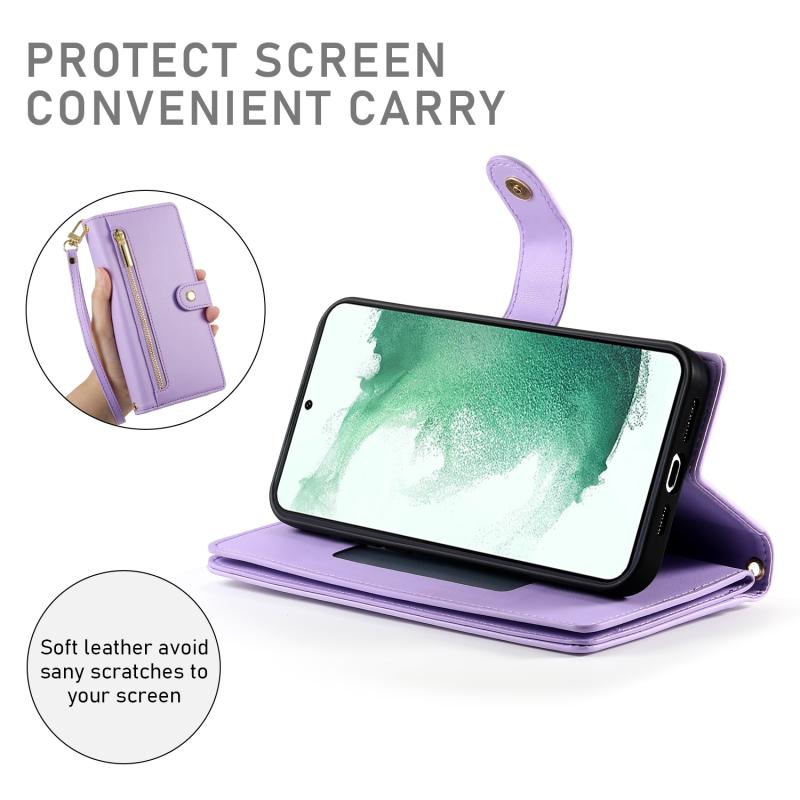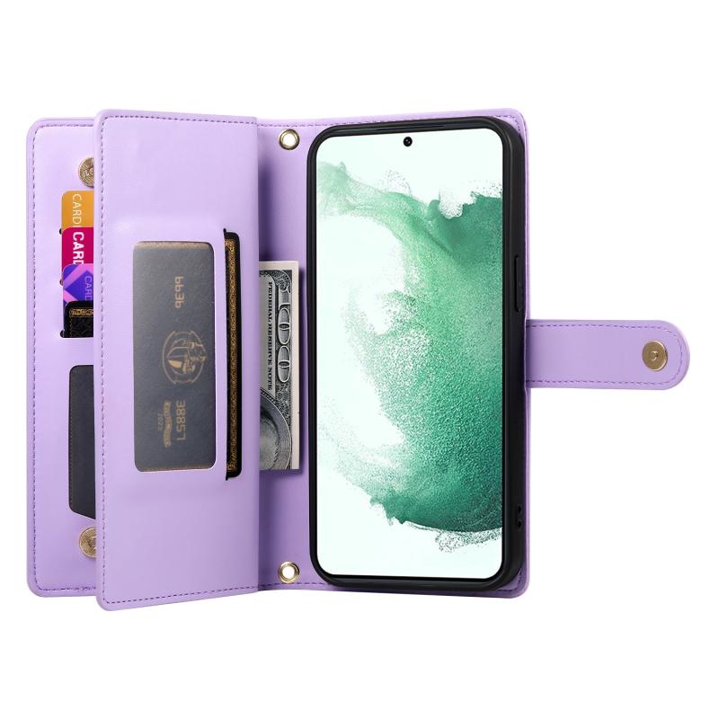 For Samsung Galaxy S22+ 5G Nine Card-slot Zipper Wallet Bag Leather Phone Case(Purple)
