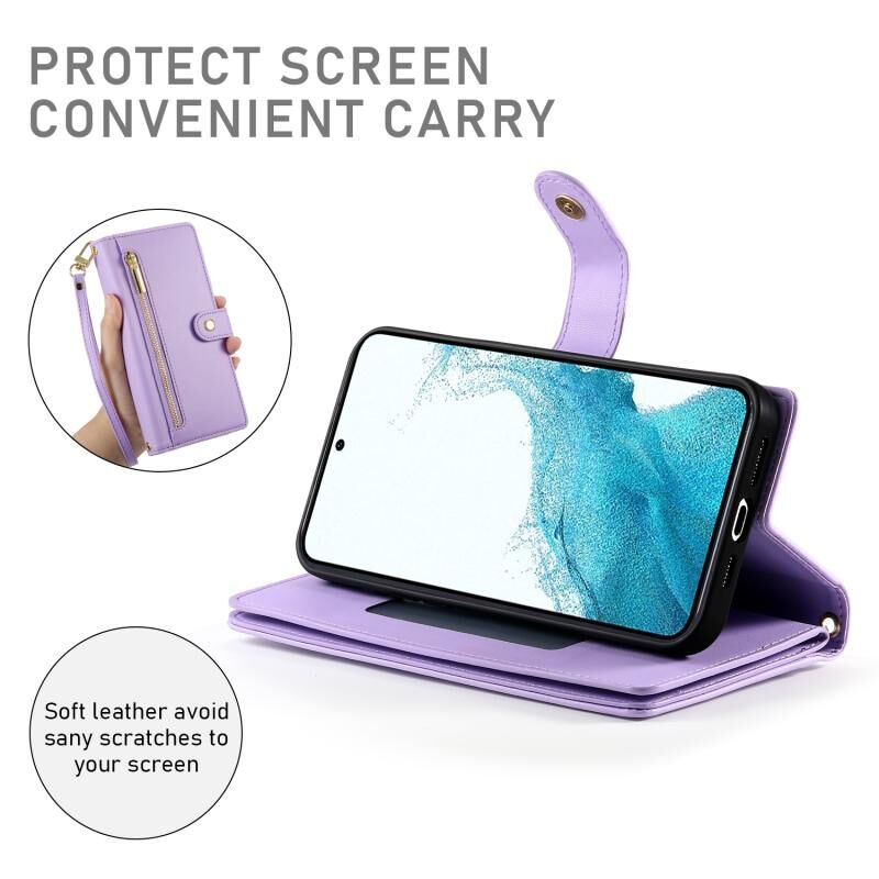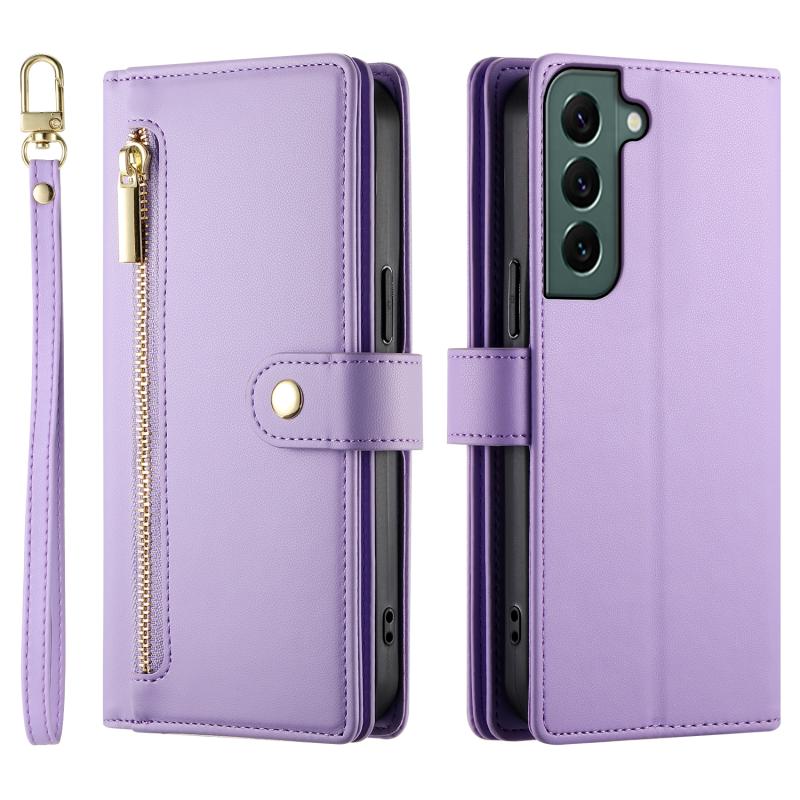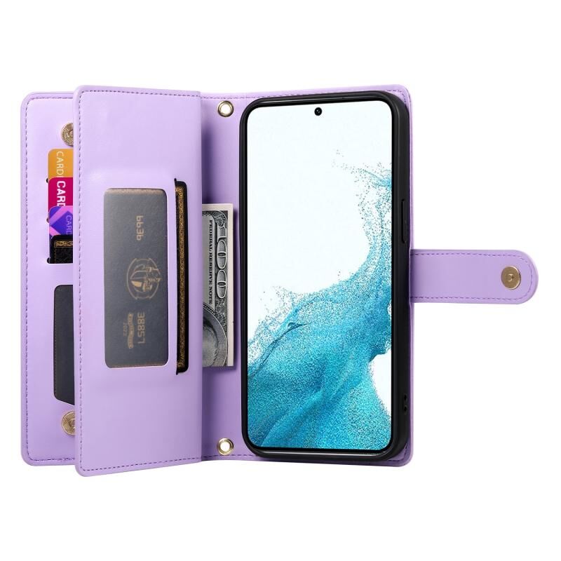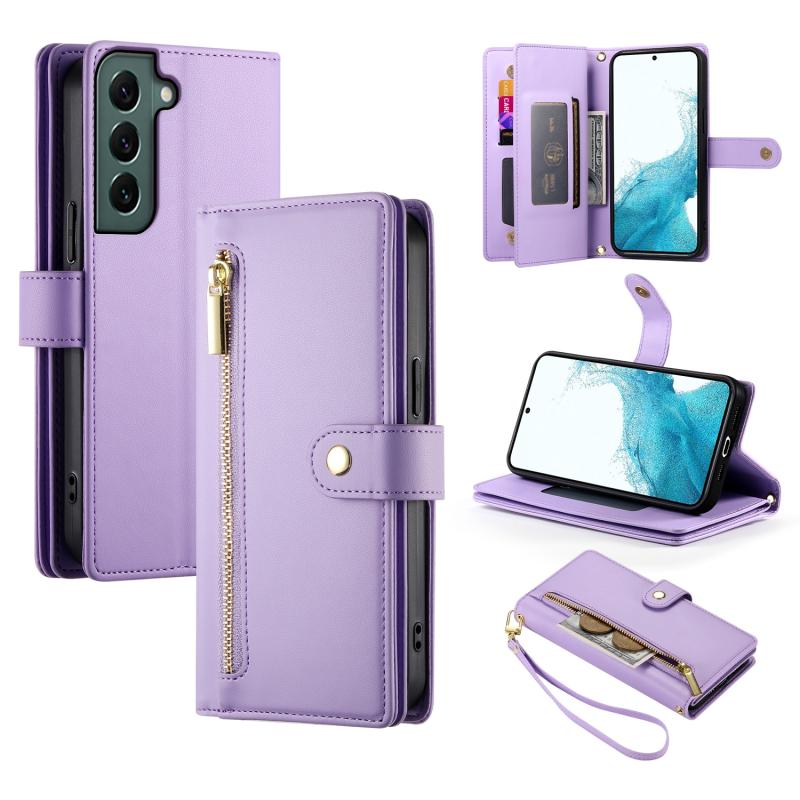 For Samsung Galaxy S22 5G Nine Card-slot Zipper Wallet Bag Leather Phone Case(Purple)