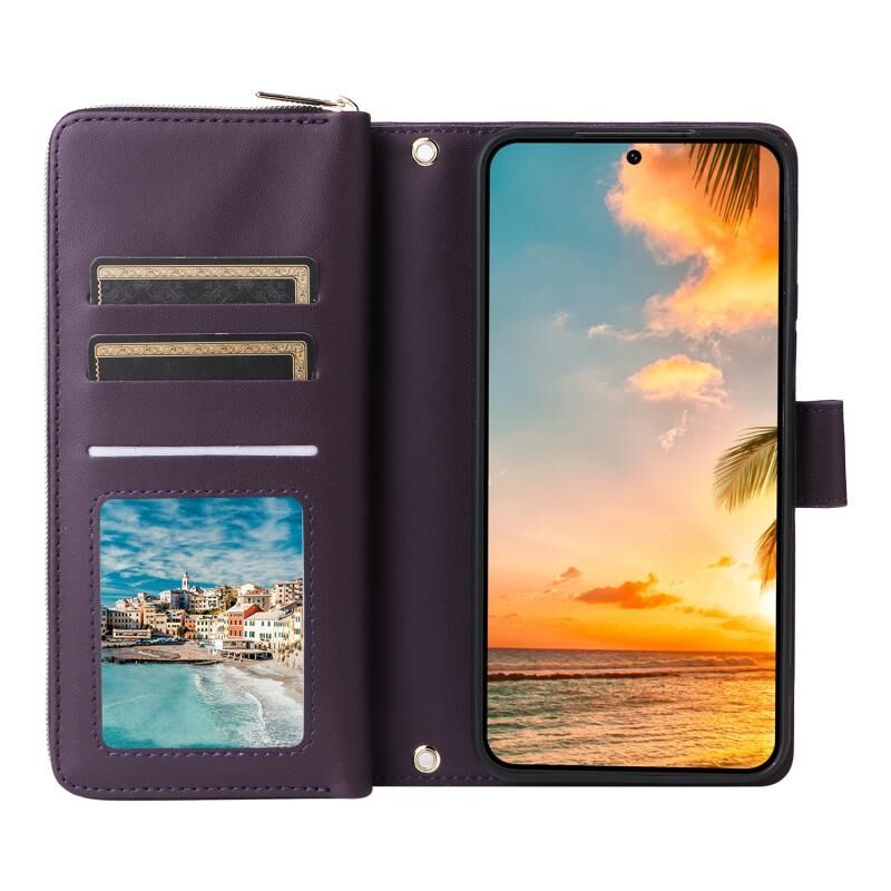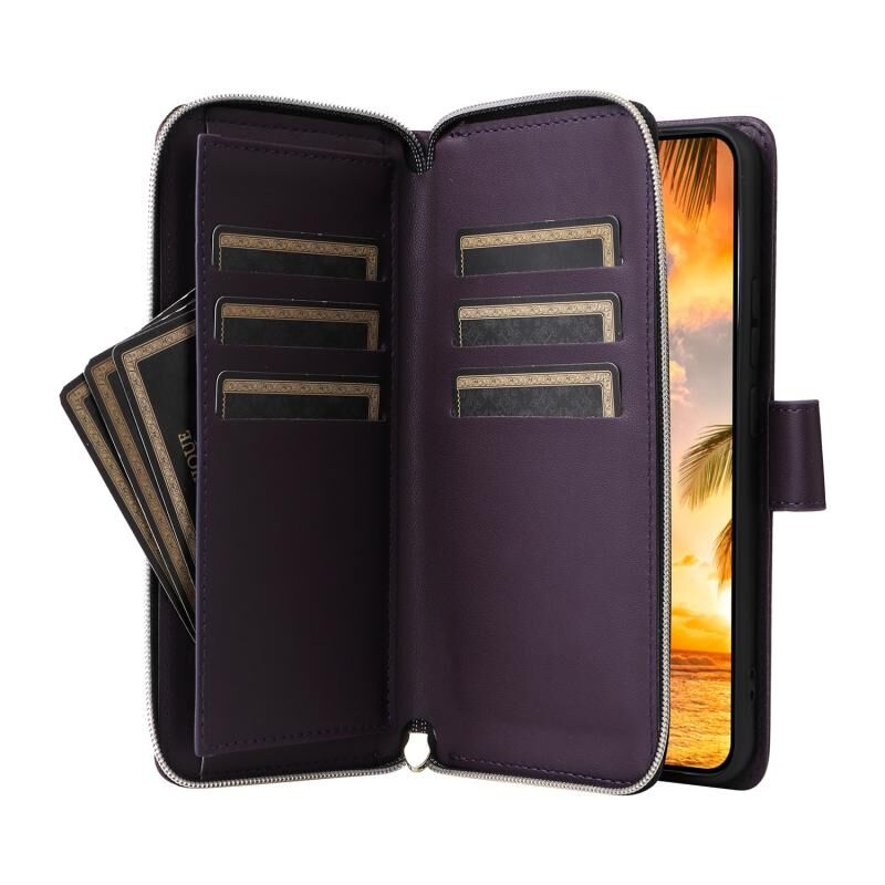 5. Πρακτική λειτουργία θήκης καρτών: Η υποδοχή κάρτας και η τσέπη πορτοφολιού με φερμουάρ και η θήκη μετρητών μπορούν να αποθηκεύσουν τις πιστωτικές σας κάρτες, τα μετρητά ή τα μικρά χαρτονομίσματα που χρειάζεστε καθημερινά.