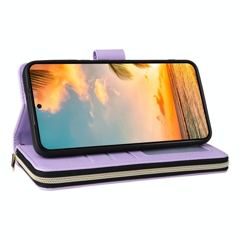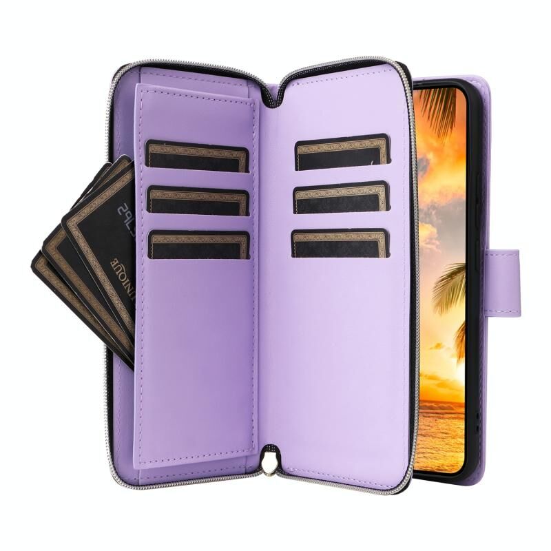 5. Πρακτική λειτουργία θήκης καρτών: Η υποδοχή κάρτας και η τσέπη πορτοφολιού με φερμουάρ και η θήκη μετρητών μπορούν να αποθηκεύσουν τις πιστωτικές σας κάρτες, τα μετρητά ή τα μικρά χαρτονομίσματα που χρειάζεστε καθημερινά.