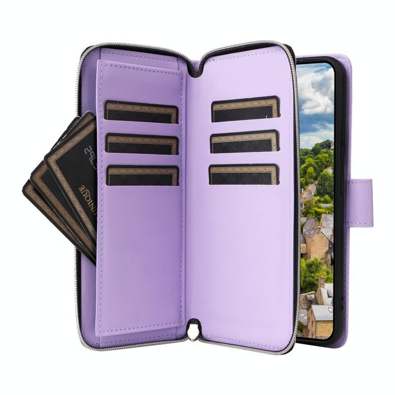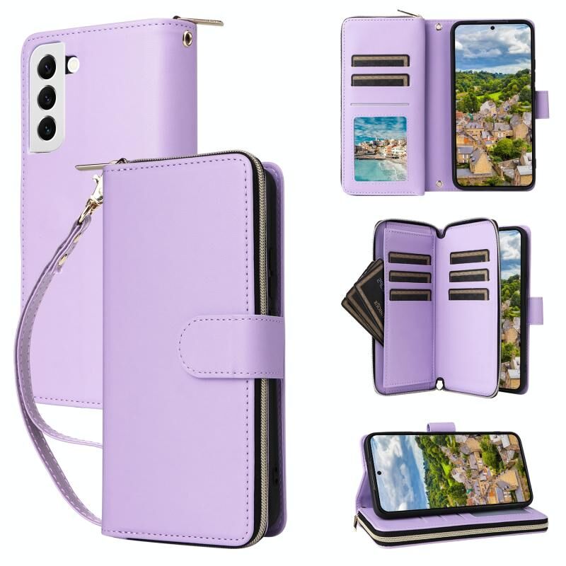 Για Samsung Galaxy S22 5G εννέα-κάρτα Slots φερμουάρ πορτοφόλι τσάντα δερμάτινη θήκη τηλεφώνου (μωβ)