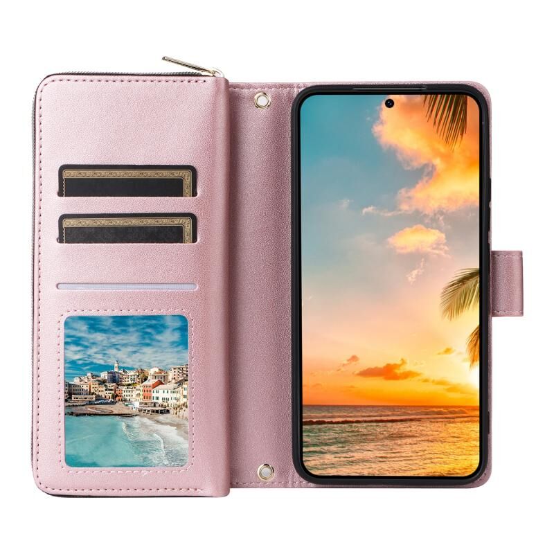 5. Πρακτική λειτουργία θήκης καρτών: Η υποδοχή κάρτας και η τσέπη πορτοφολιού με φερμουάρ και η θήκη μετρητών μπορούν να αποθηκεύσουν τις πιστωτικές σας κάρτες, τα μετρητά ή τα μικρά χαρτονομίσματα που χρειάζεστε καθημερινά.