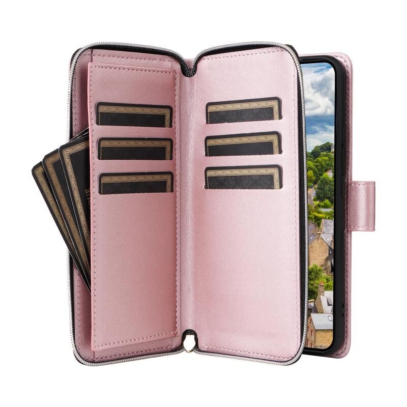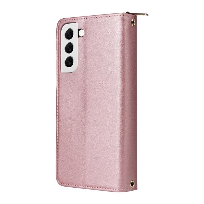 Για Samsung Galaxy S22 5G εννέα-κάρτα Slots φερμουάρ πορτοφόλι τσάντα δερμάτινη θήκη τηλεφώνου (Rose Gold)