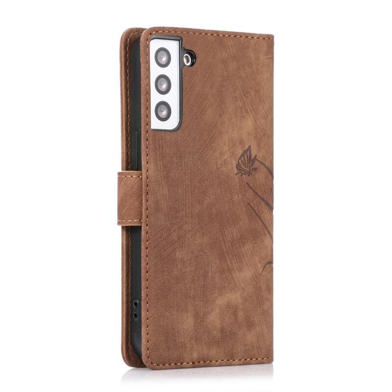 For Samsung Galaxy S22 5G Orchid Butterfly Embossed Leather Phone Case(Brown)