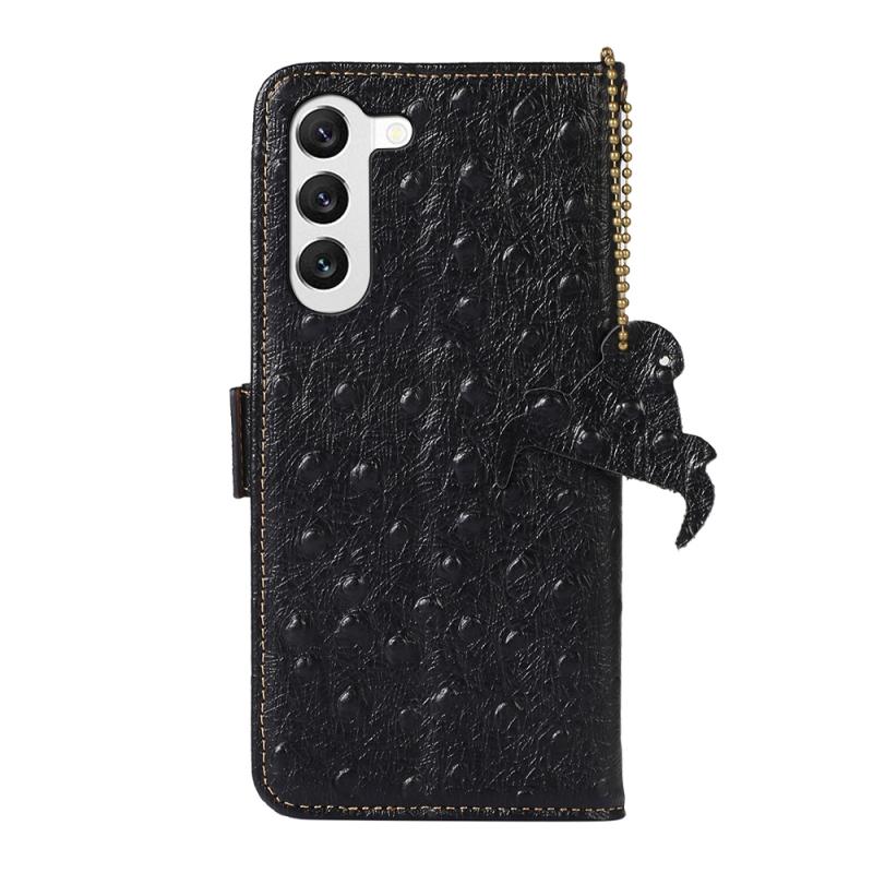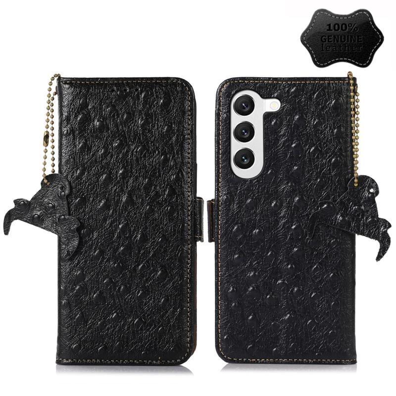 Θήκη τηλεφώνου Samsung Galaxy S22 5G από γνήσιο δέρμα με σχέδιο στρουθοκάμηλου και προστασία RFID (Πράσινο)