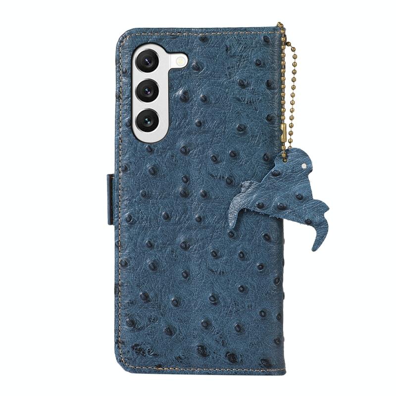 For Samsung Galaxy S22 5G Ostrich Pattern Genuine Leather RFID Phone Case(Blue)
