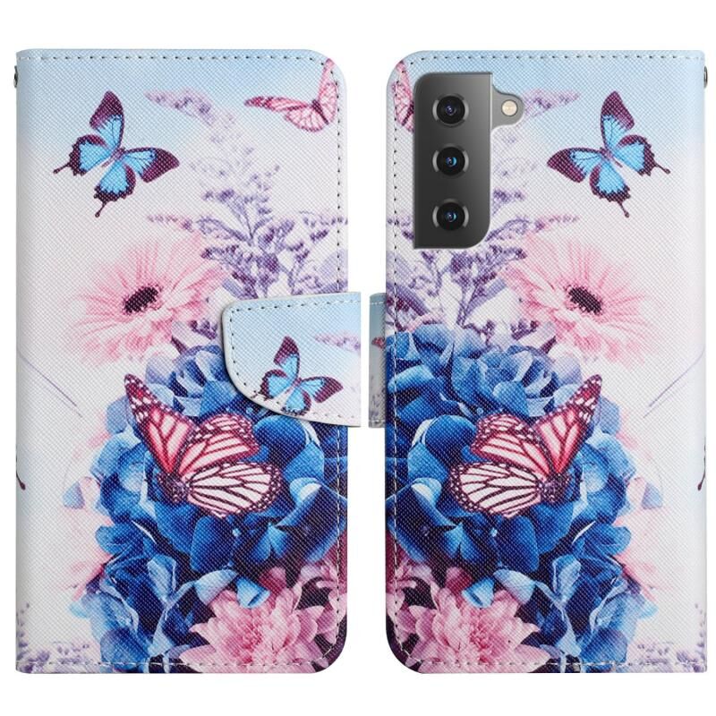 Θήκη τηλεφώνου Samsung Galaxy S22+ 5G από δέρμα με οριζόντιο άνοιγμα και ζωγραφισμένο σχέδιο (Φωτεινή Πεταλούδα)