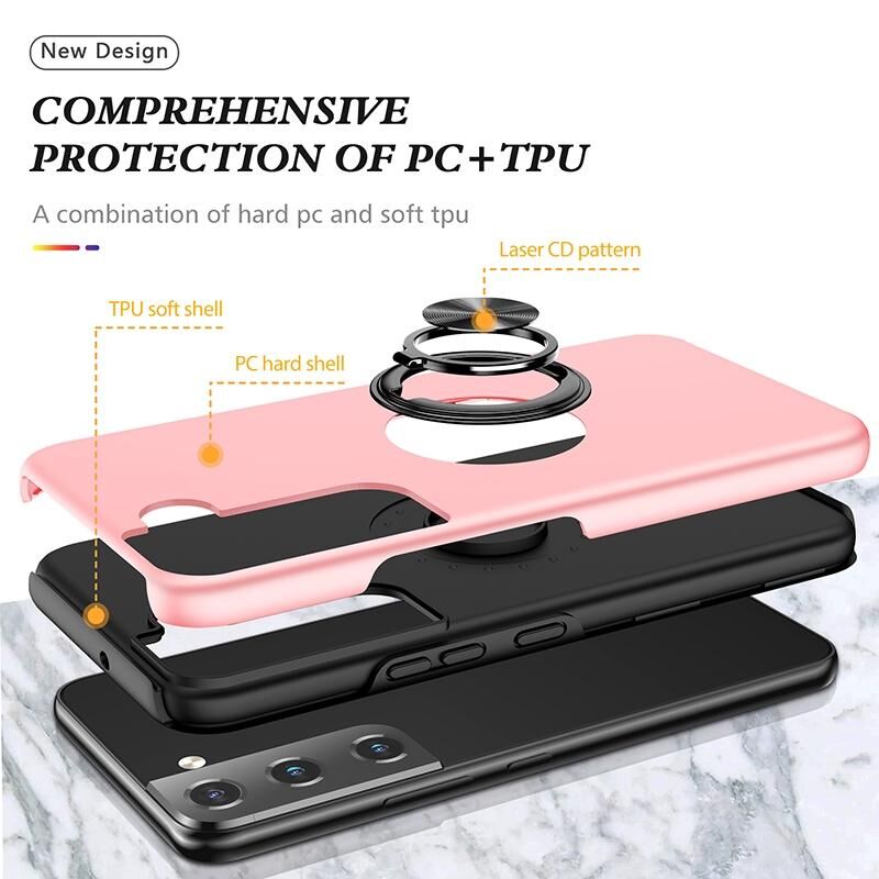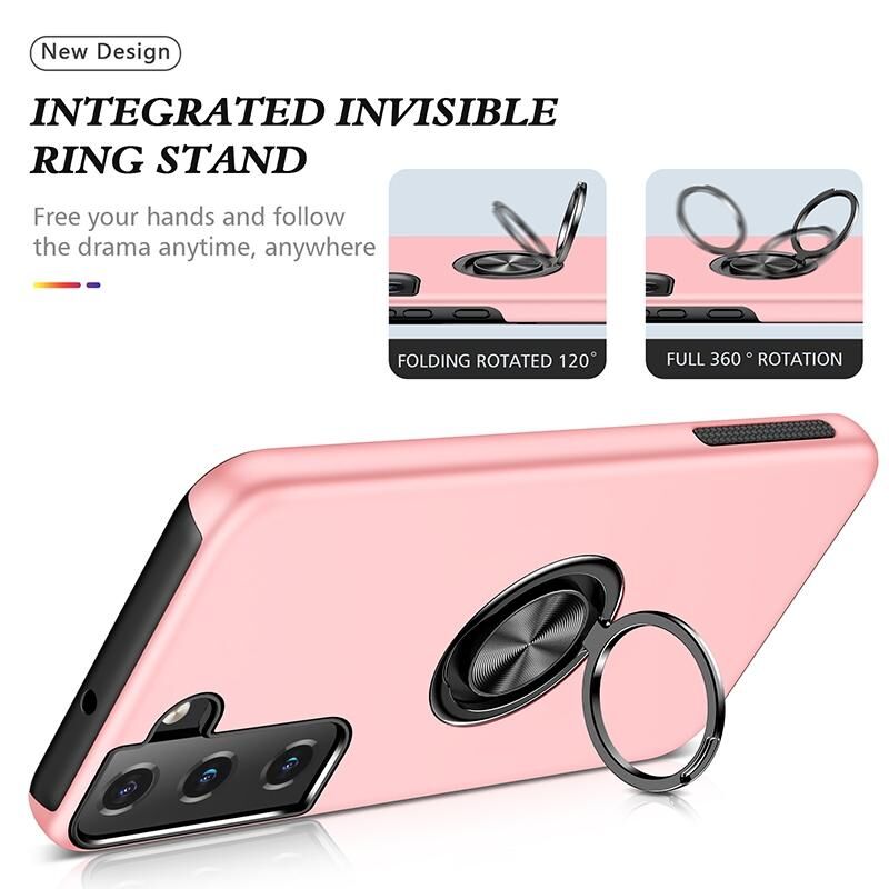 Για Samsung Galaxy S22 5G PC + TPU μαγνητική θήκη τηλεφώνου με αόρατο δαχτυλίδι κάτοχος (Rose Gold)