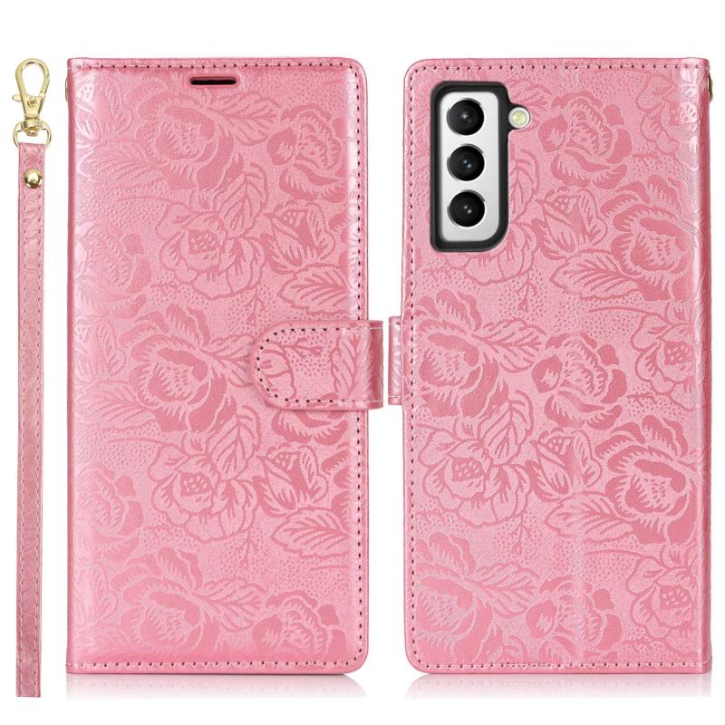 For Samsung Galaxy S22 5G Peony Flowers Imprint Leather Phone Case(Pink)