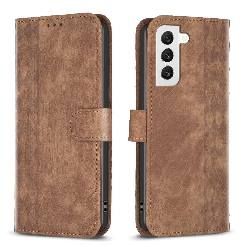 Για Samsung Galaxy S22+ 5G καρό ανάγλυφη δερμάτινη θήκη τηλεφώνου (καφέ)