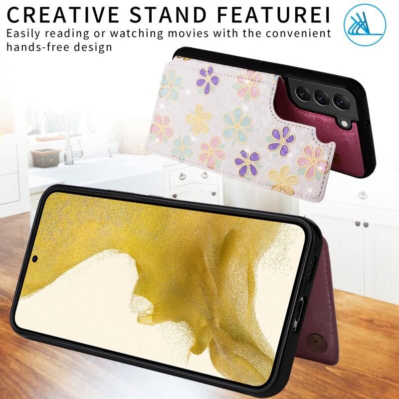 For Samsung Galaxy S22+ 5G Printed Double Buckle RFID Anti-theft Phone Case(Blossoming Flowers)