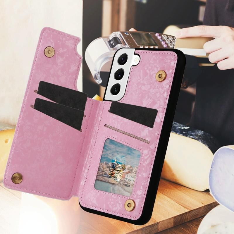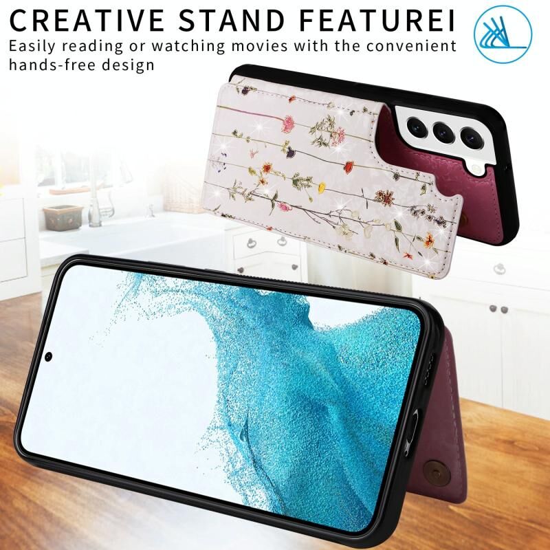 Θήκη τηλεφώνου με διπλή αγκράφα, αντι-κλοπής RFID, εκτυπωμένη για Samsung Galaxy S22 5G (Κόσμος αποξηραμένων λουλουδιών)